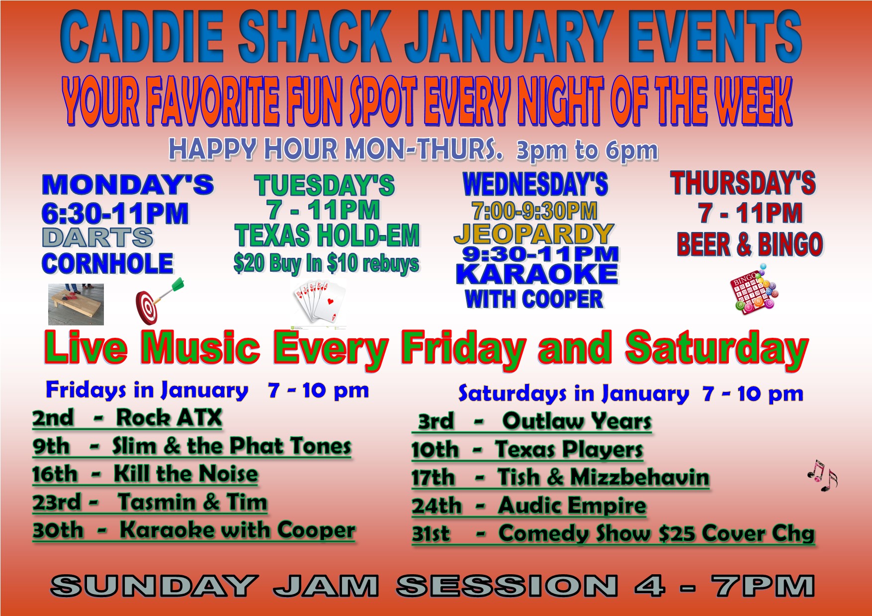 Hope to see you at the Caddie Shack Sports Bar for some great live music!